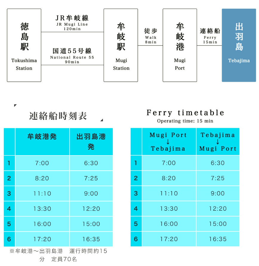 Mugi Port – Tebajima Port Approximate travel time: 15 minutes Capacity: 70 passengers